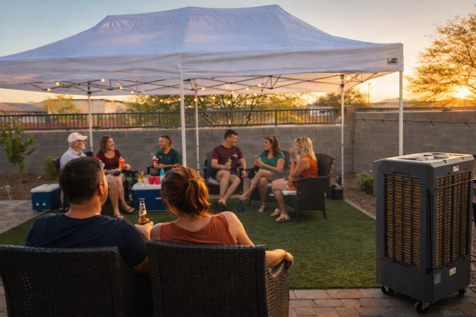 Swamp coolers work extremely well in Arizona’s dry climate, making them a popular choice for outdoor events in Goodyear and the West Valley. They perform best in shaded or partially covered areas with good airflow, helping keep guests comfortable during backyard parties, weddings, and outdoor gatherings.